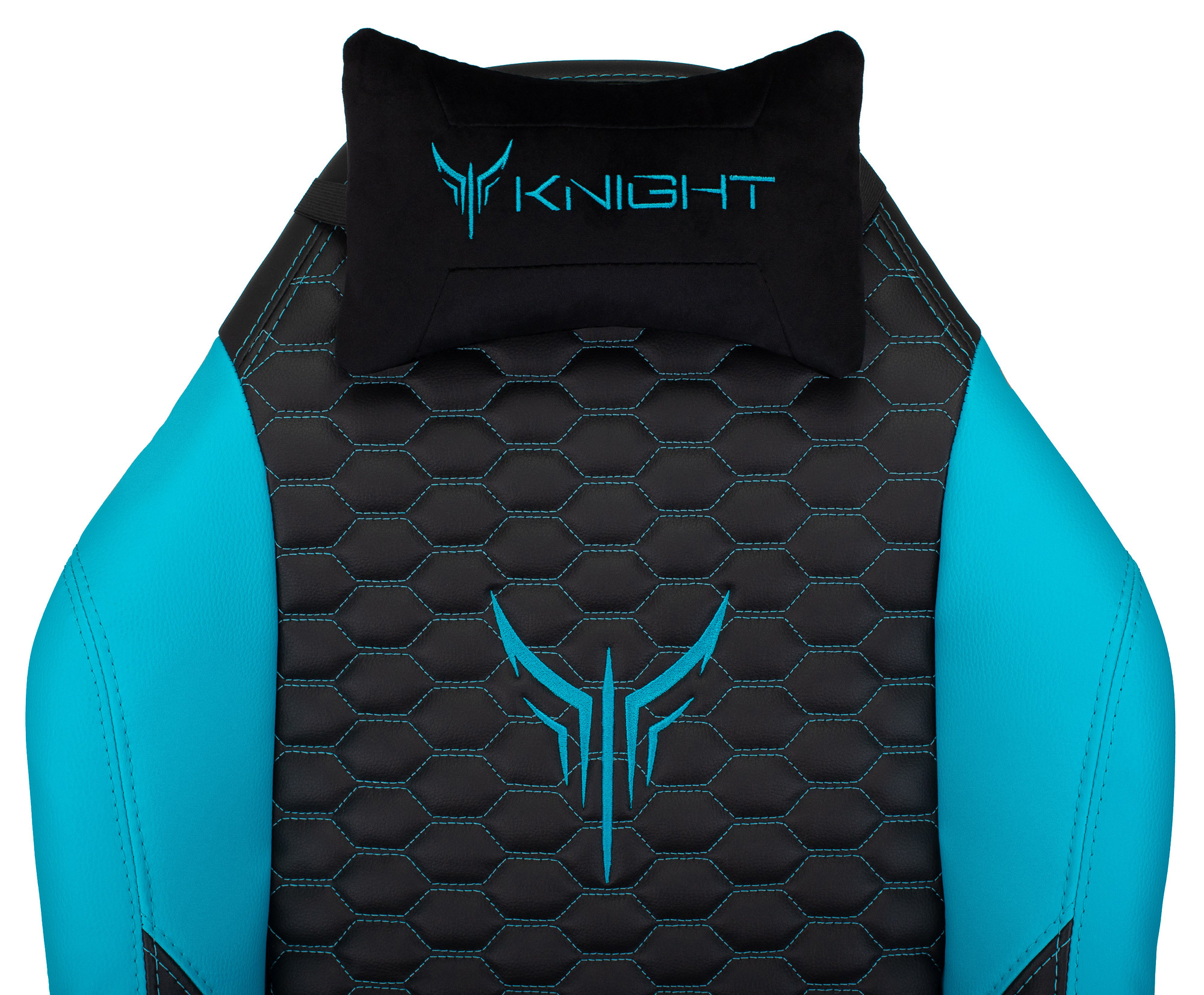 Кресло игровое Knight Neon черный/голубой соты эко.кожа с подголов. крестов. металл [KNIGHT NEON LBLUE]