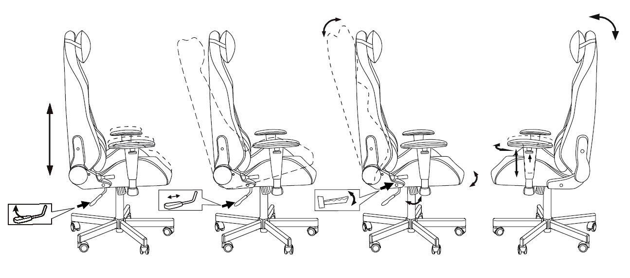 | Особенности / доп.информация | 2D- подлокотники, колеса для паркета / ламината, реклайнер, две подушки |