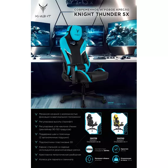 Кресло игровое Knight Thunder 5X черный/желтый эко.кожа крестов. металл [KNIGHT THUNDER 5X Y]