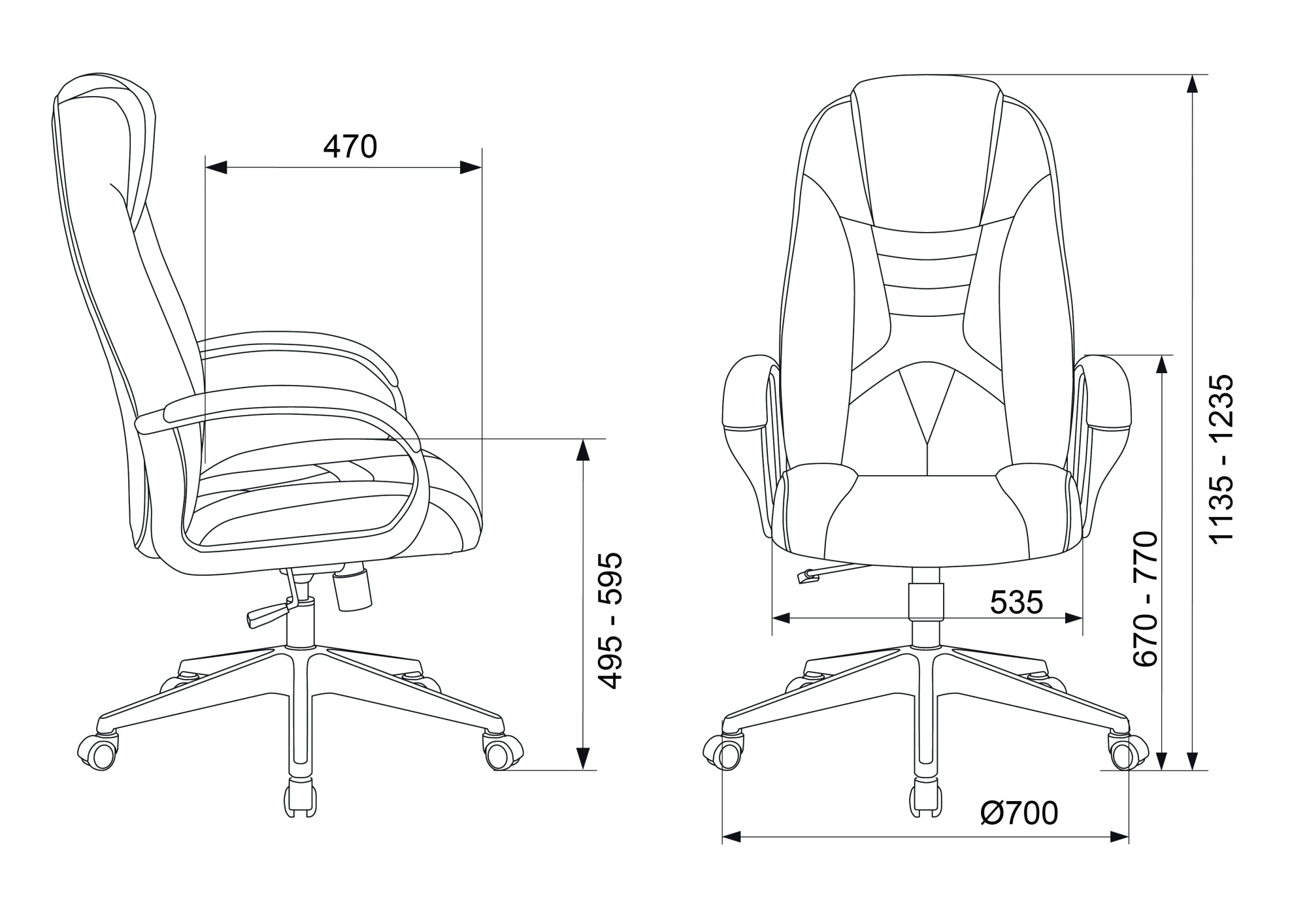 | Высота кресла / стула MIN | 1135 мм |