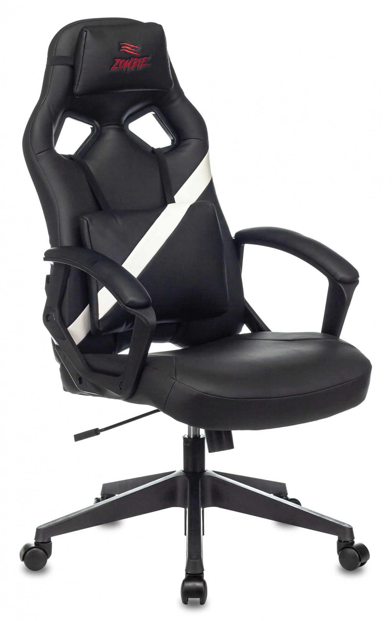 Кресло игровое Zombie DRIVER WH черный/белый эко.кожа с подголов. крестов. пластик