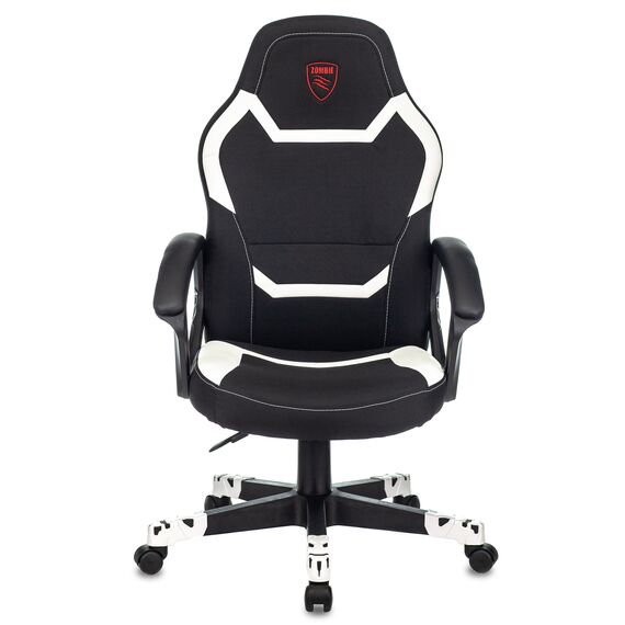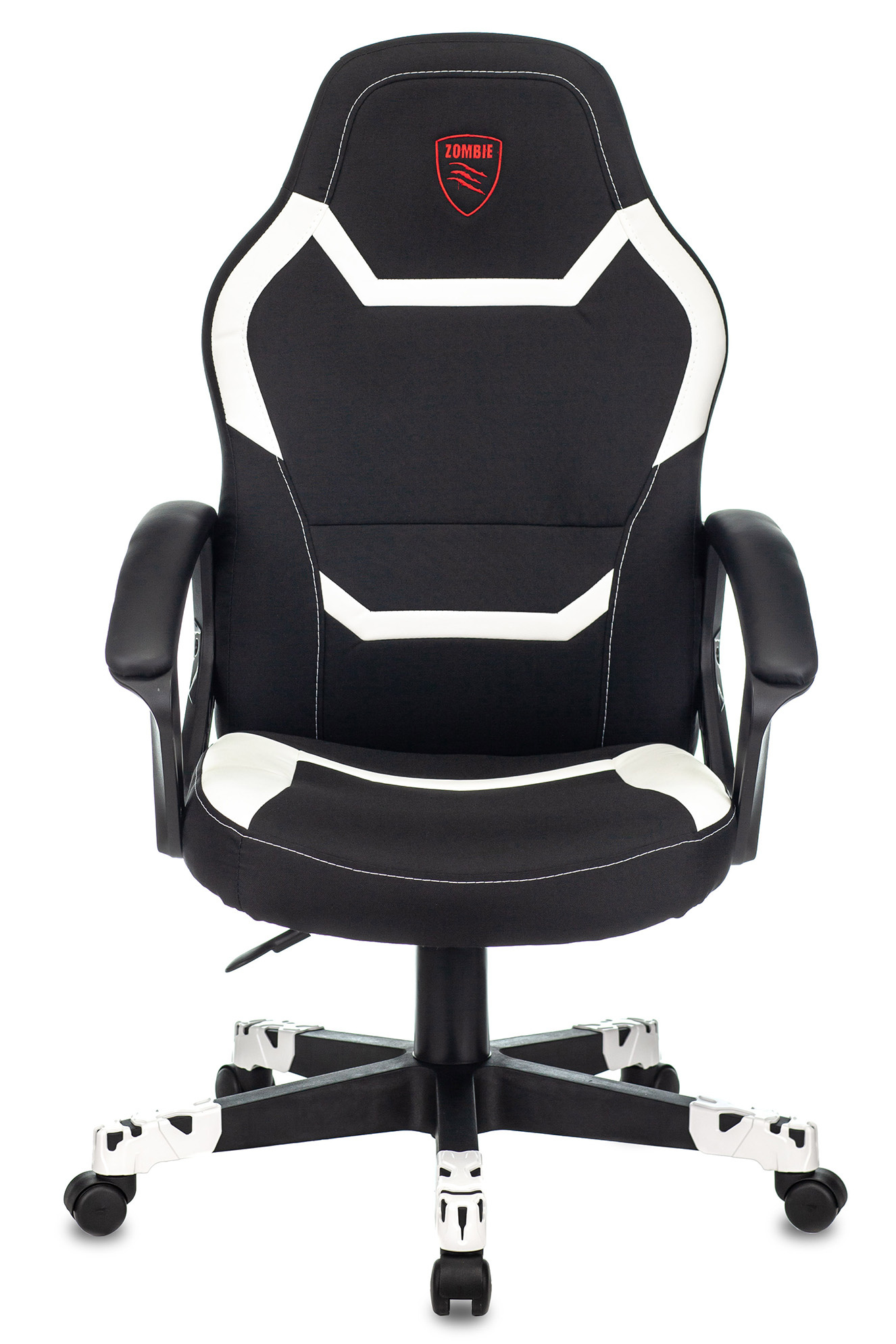 Кресло игровое Zombie ZOMBIE 10 WHITE черный/белый ткань/эко.кожа крестов. пластик