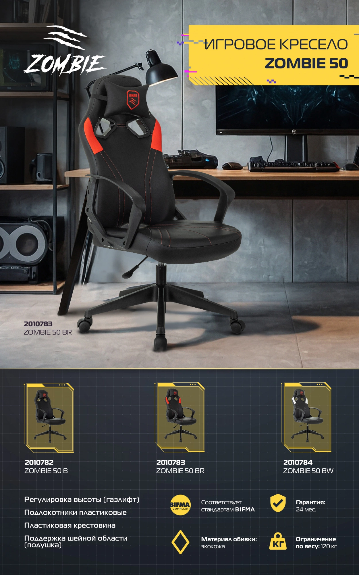 Кресло игровое Zombie ZOMBIE 50 B черный эко.кожа крестов. пластик пластик черный