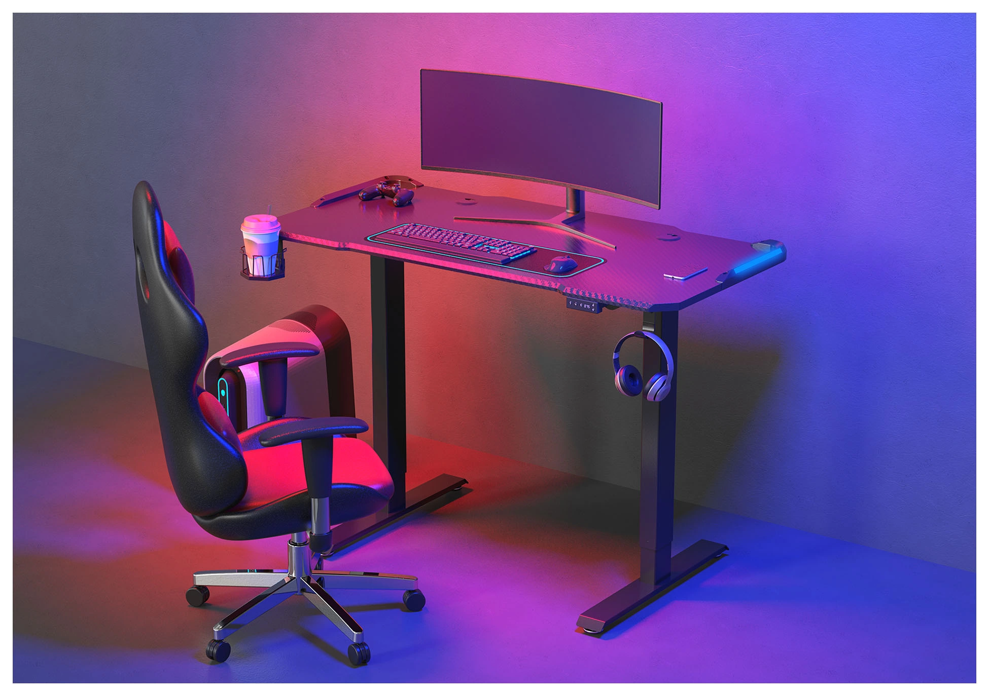 Стол для компьютера Cactus CS-ED-GBK подъёмный столешница МДФ карбон каркас черный