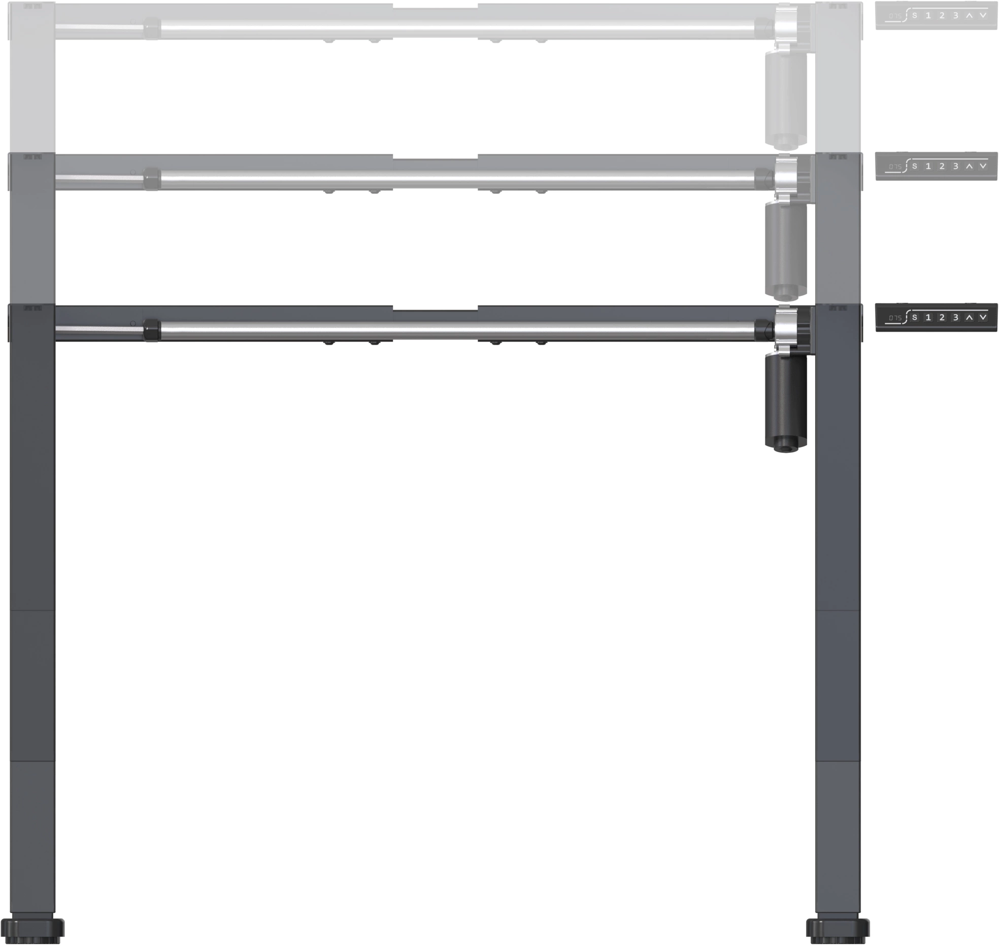 | Особенности | диапазон регулировки ширины: 99-140 см; диапазон регулировки высоты: 72-120 см; скорость подъема/опускания: 25 мм/с; уровень шума при подъеме/опускании: <55dB; память положений: 2 |