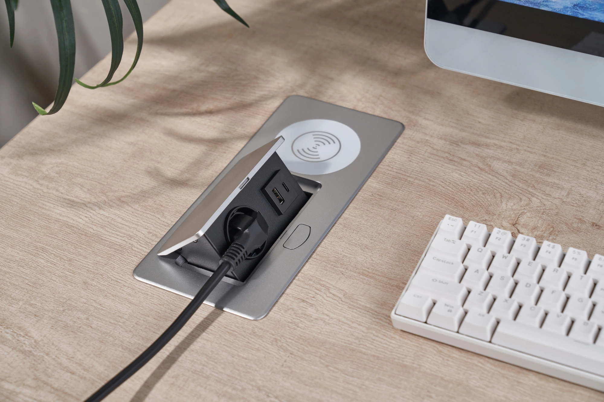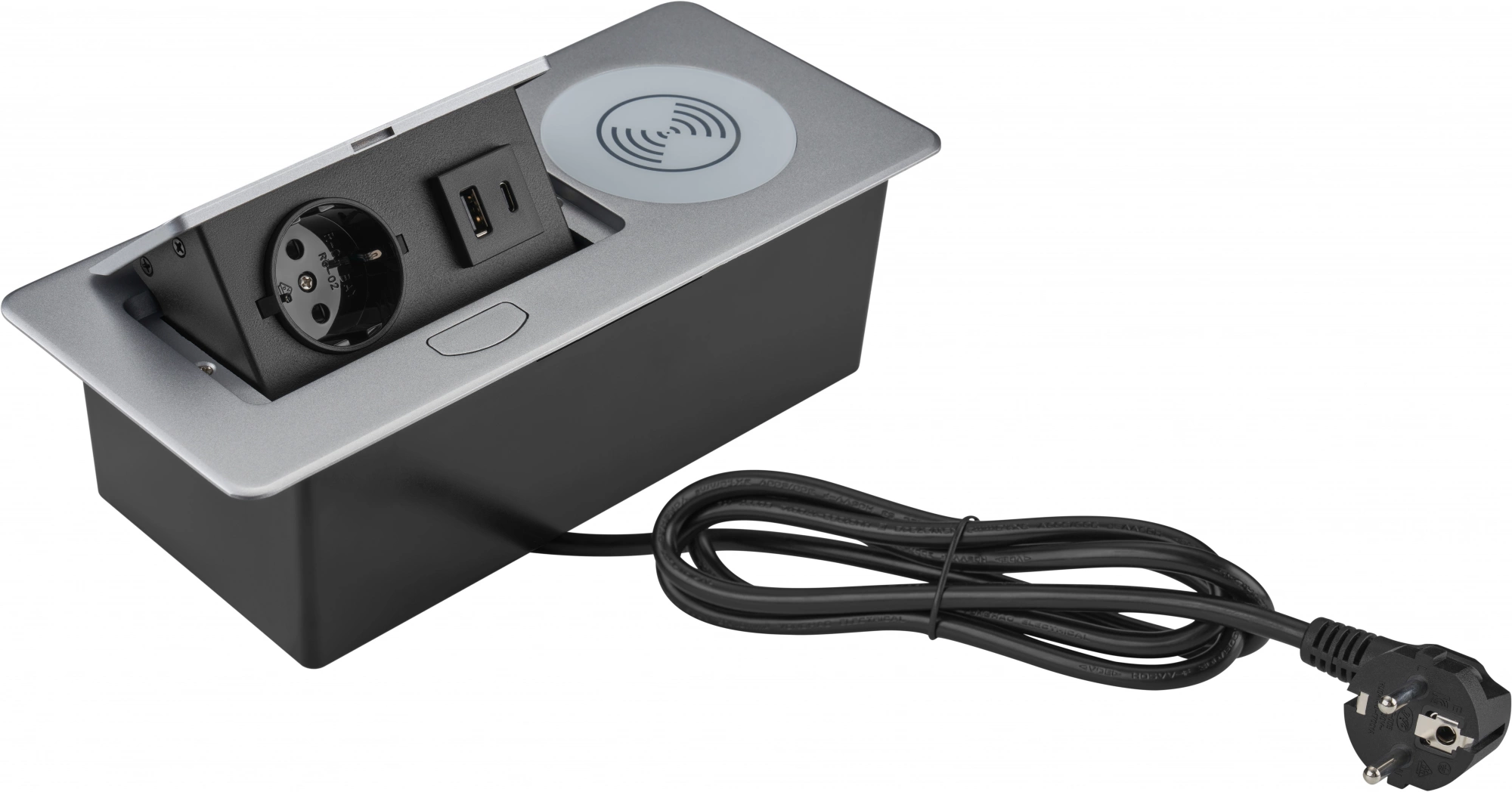 Розетка Cactus CS-SOCKET-USBA/C-WLESS для столешницы 26.5x11.8x6.5см серебристый