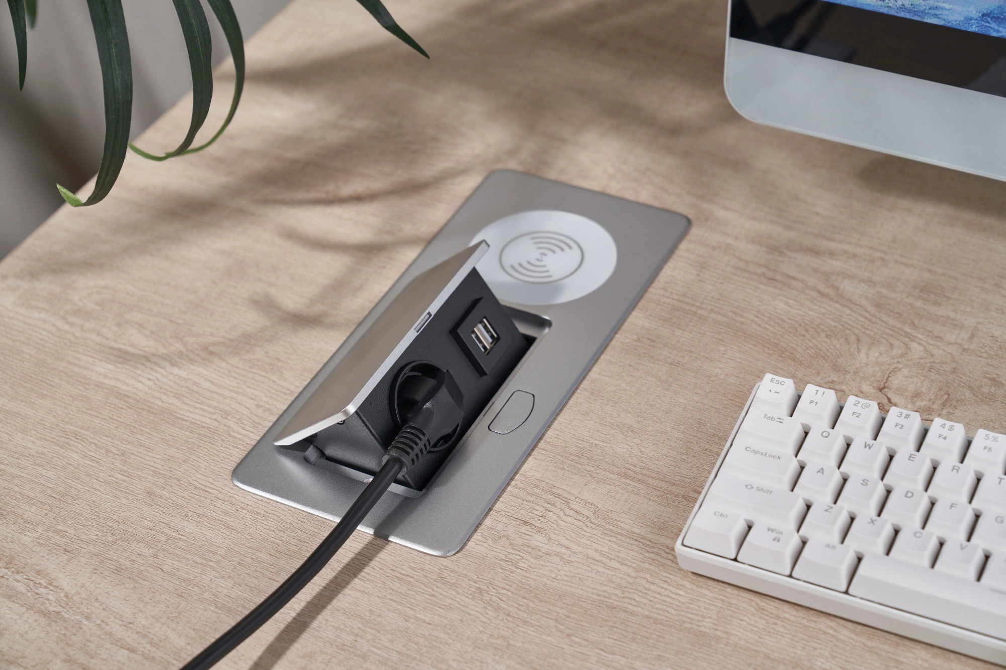 Розетка Cactus CS-SOCKET-USBA-WLESS для столешницы 26.5x11.8x6.5см серебристый