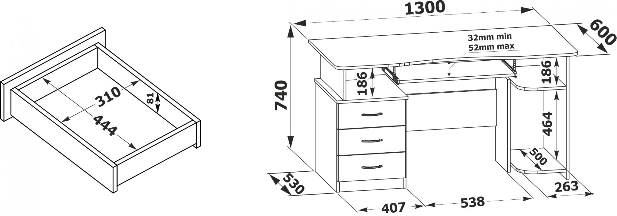 | Дополнительные полки | тумба с тремя ящиками |