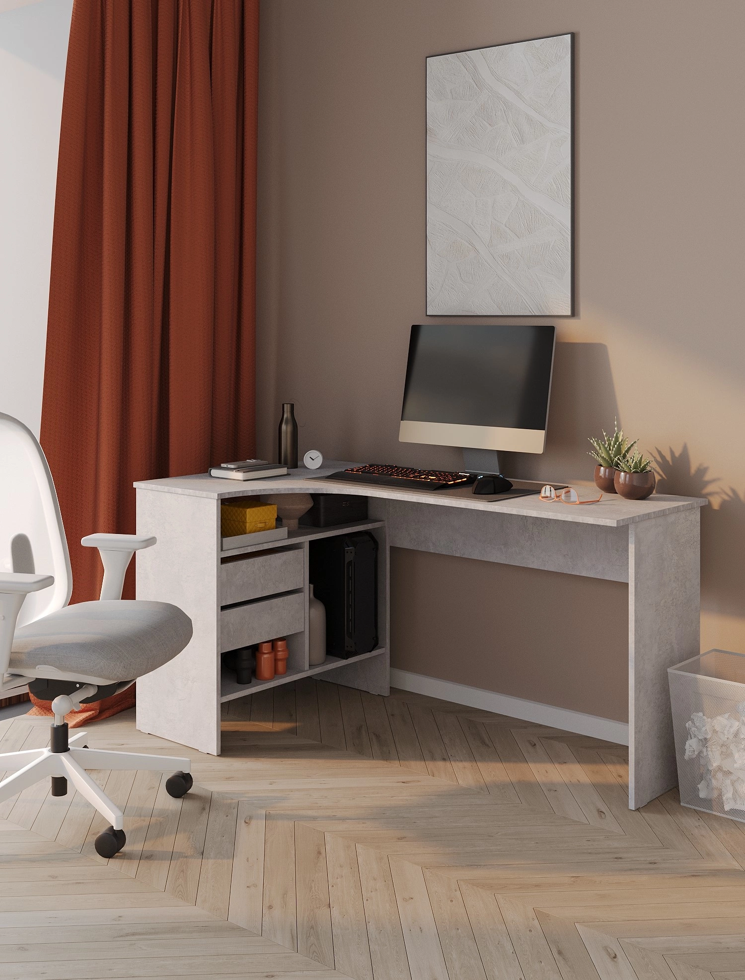 Стол для компьютера СОКОЛ СПм-25 Л столешница ЛДСП бетон 145x74x81см [00-00011530]