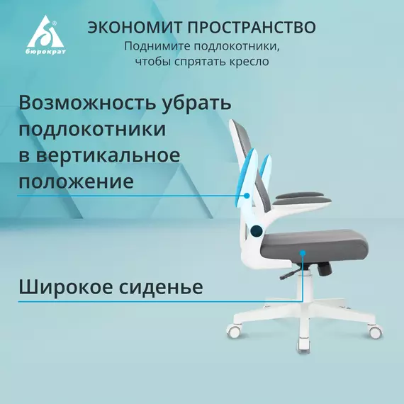 Кресло Бюрократ ASTER N-W GREY темно-серый TW-04 Neo Grey сетка/ткань крестов. пластик пластик белый
