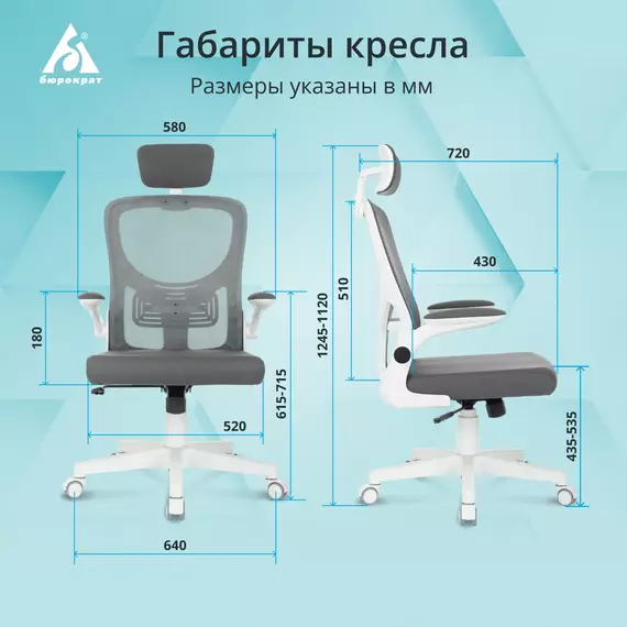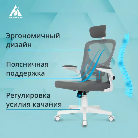 Кресло Бюрократ ASTER NH-W GREY темно-серый TW-04 Neo Grey сетка/ткань с подголов. крестов. пластик пластик белый