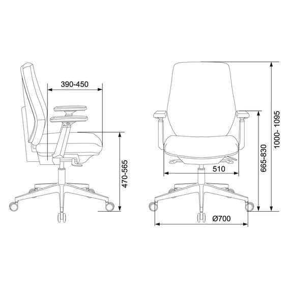 | Высота с подлокотниками MIN | 665 мм |
