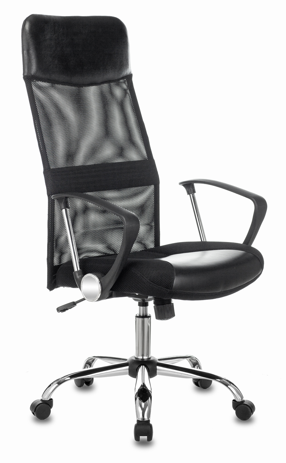 Кресло руководителя Бюрократ CH-600SL/LUX/BLACK черный эко.кожа/сетка крестов. металл хром