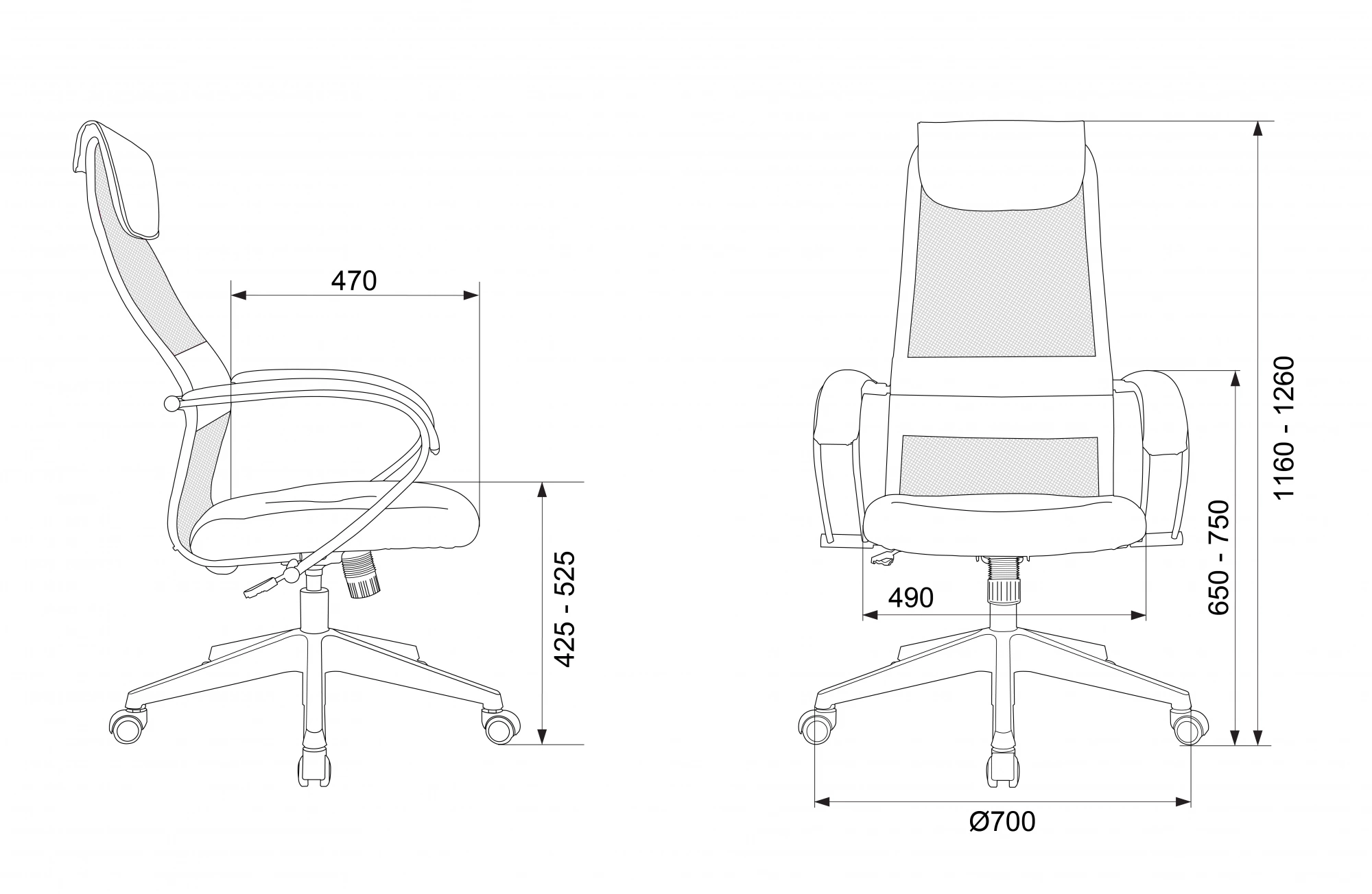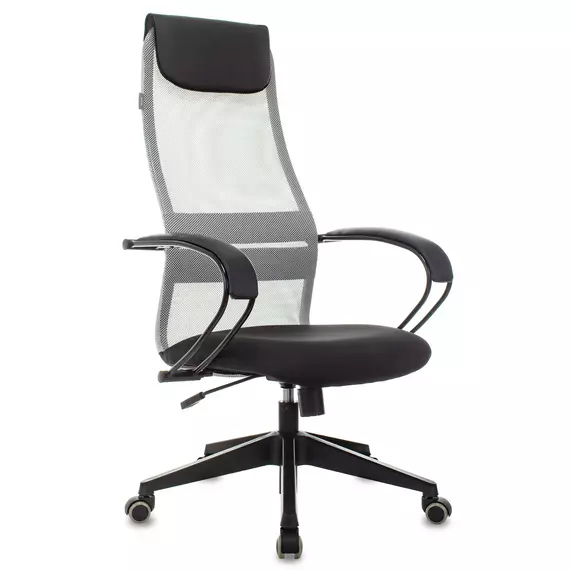 Кресло руководителя Бюрократ CH-607/LGREY светло-серый TW-02 сиденье черный сетка/ткань с подголов. крестов. пластик