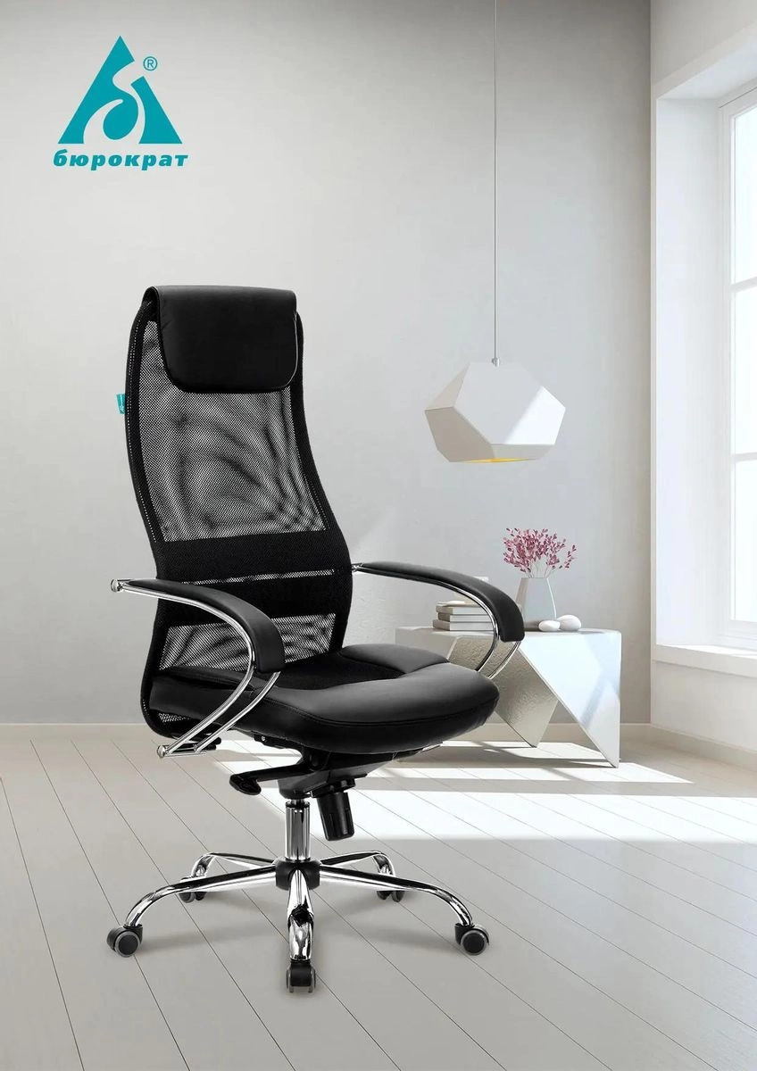Кресло руководителя Бюрократ CH-609SL/BLACK черный TW-01 TW-11 эко.кожа/сетка с подголов. крестов. металл хром