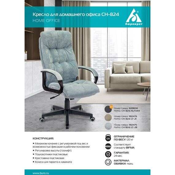 Кресло руководителя Бюрократ CH-824/LT-21 Fabric песочный Light-21 крестов. пластик