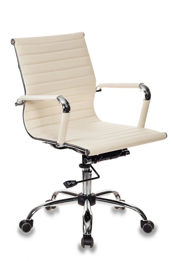 Кресло руководителя Бюрократ CH-883-LOW/IVORY слоновая кость эко.кожа низк.спин. крестов. металл хром