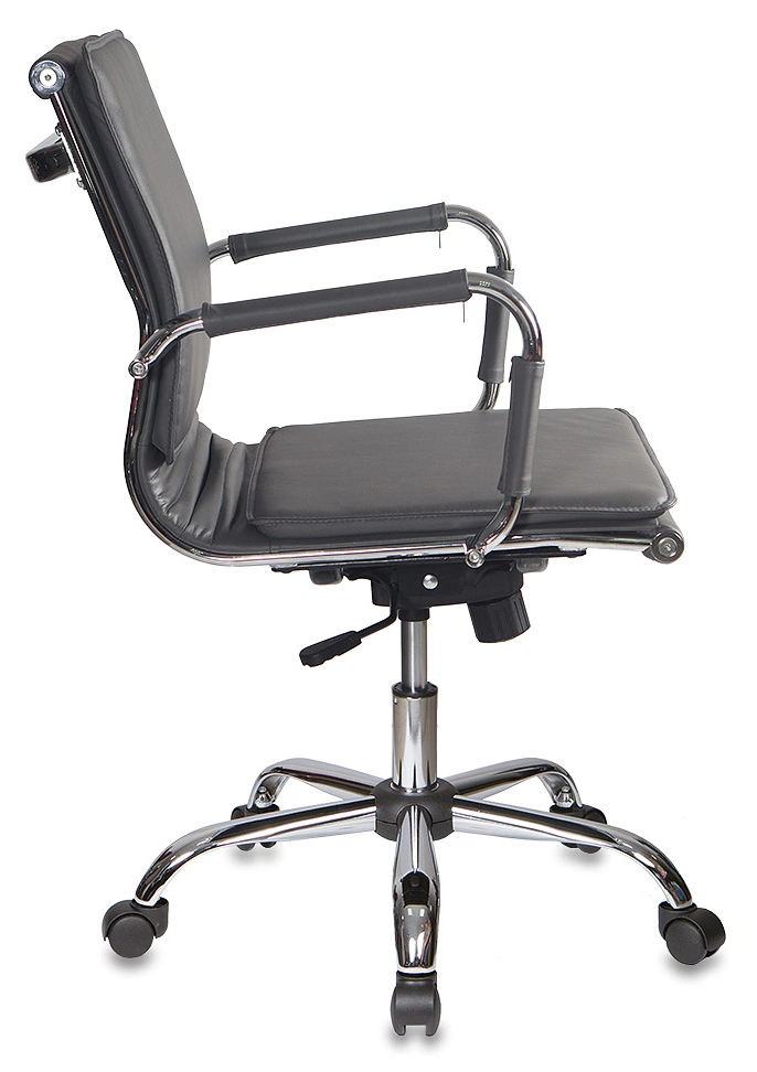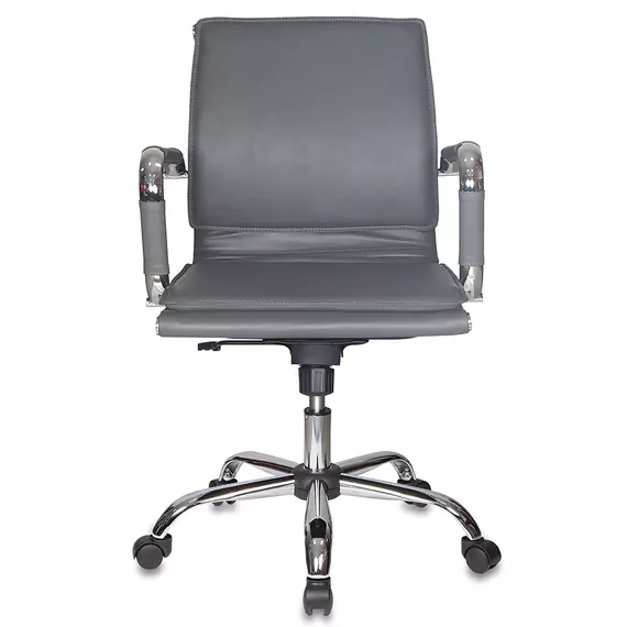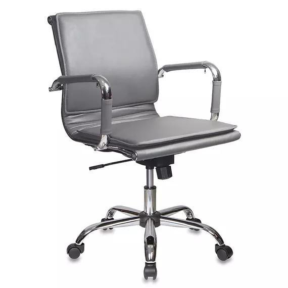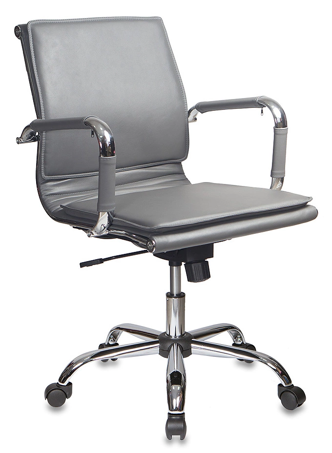Кресло руководителя Бюрократ CH-993-LOW/GREY серый эко.кожа низк.спин. крестов. металл хром