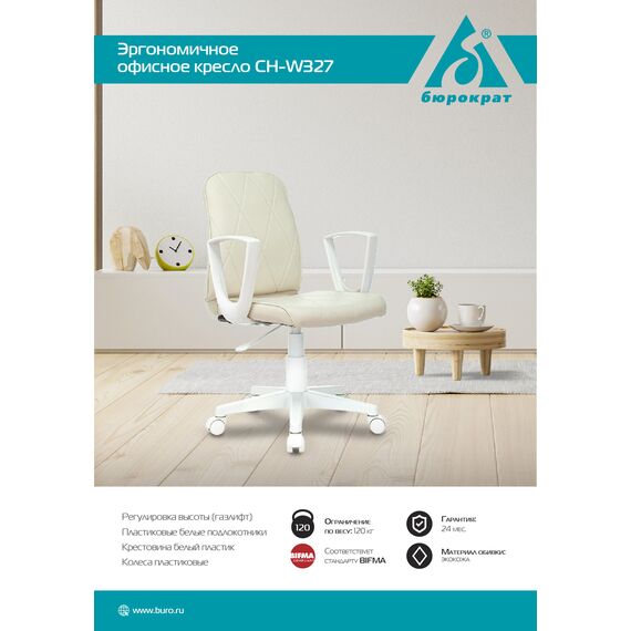 Кресло Бюрократ CH-W327/OR-10 слоновая кость эко.кожа крестов. пластик пластик белый