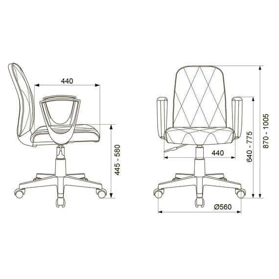 | Высота с подлокотниками MIN | 640 мм |