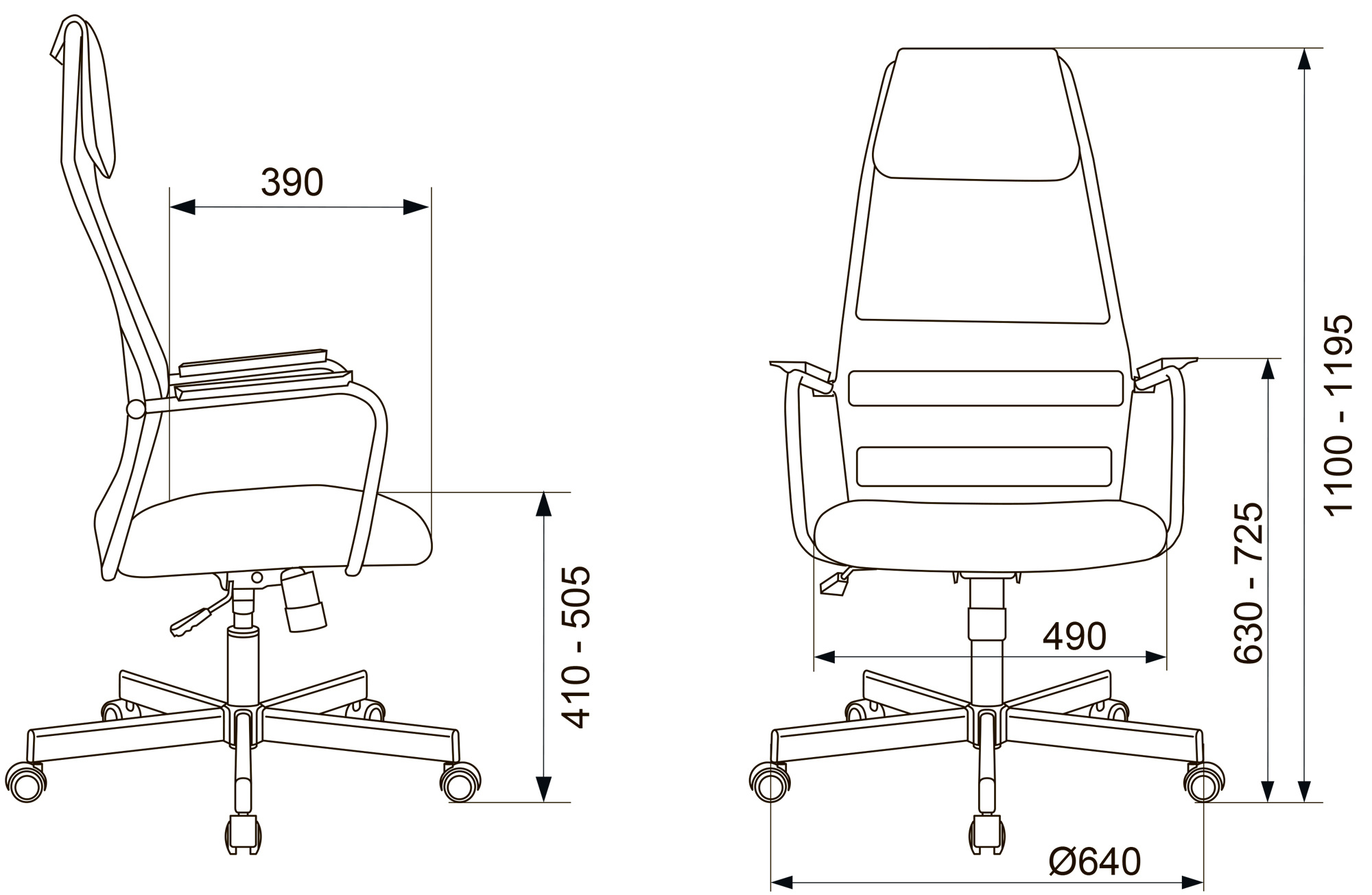 | Высота с подлокотниками MIN | 630 мм |