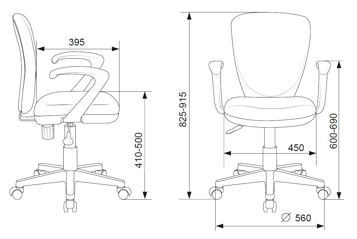 | Высота кресла / стула MIN | 825 мм |