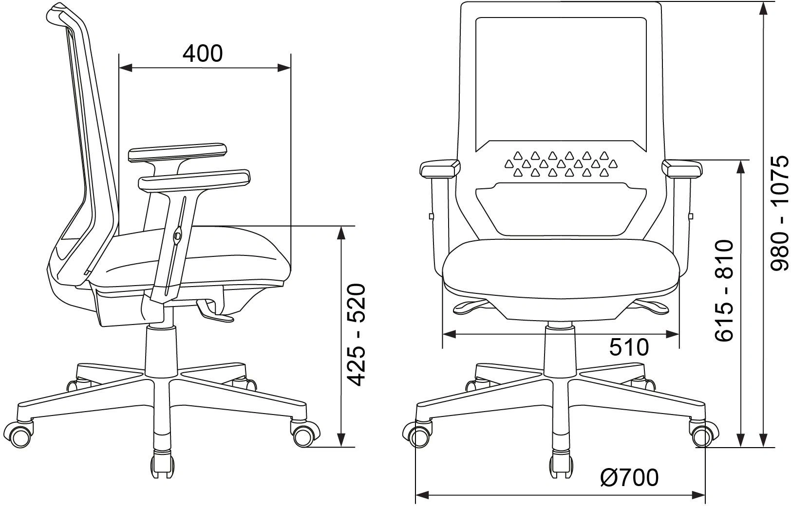 | Высота с подлокотниками MIN | 615 мм |