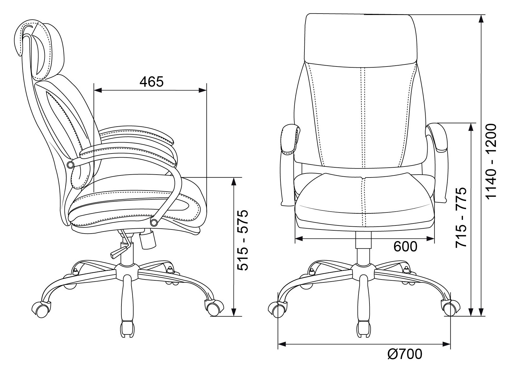 | Высота с подлокотниками MIN | 715 мм |