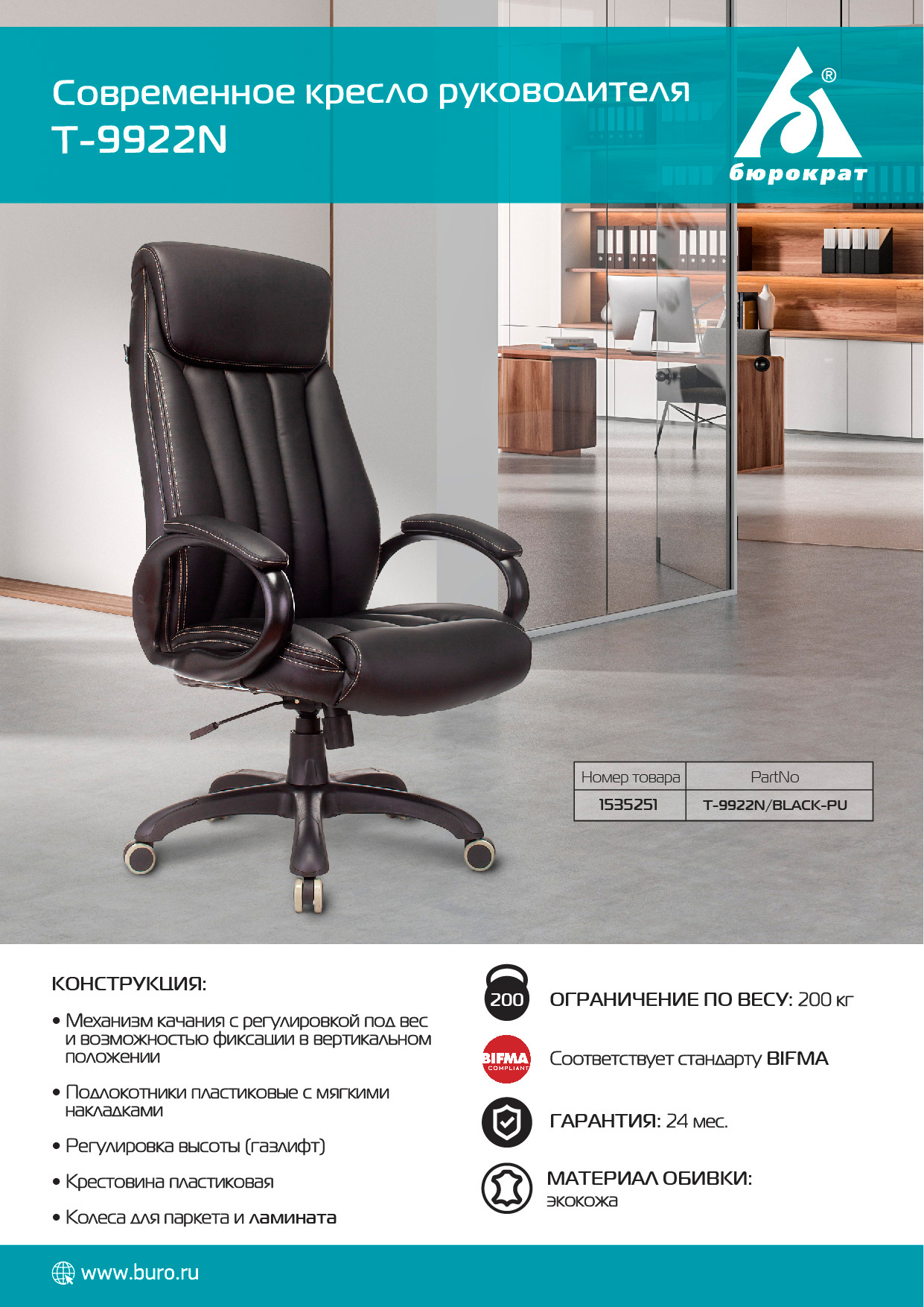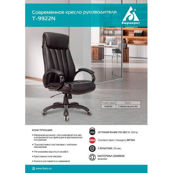 Наличие товара Бюрократ T-9922N/BLACK-PU