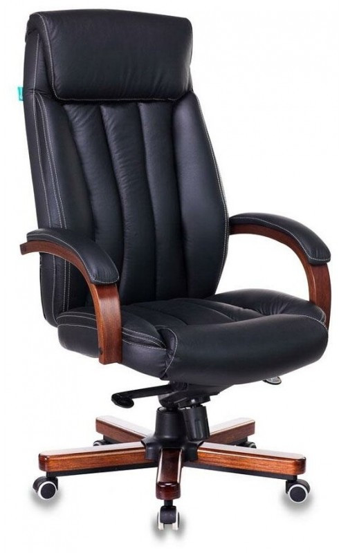 Кресло руководителя Бюрократ T-9922WALNUT/BLACK на колесиках, кожа, черный