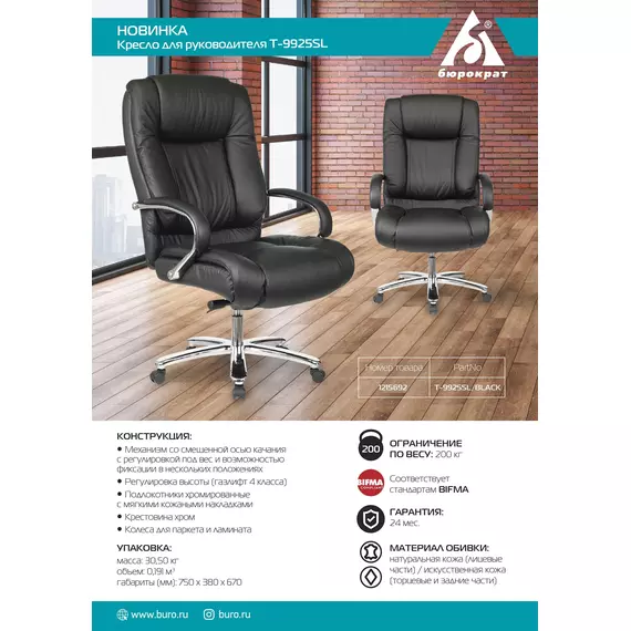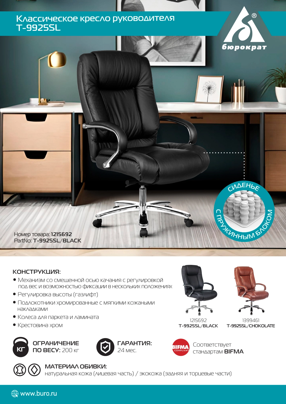 Кресло руководителя Бюрократ T-9925SL/BLACK черный кожа крестов. металл хром