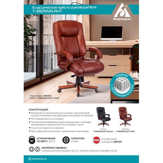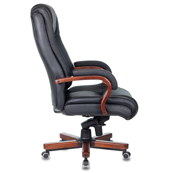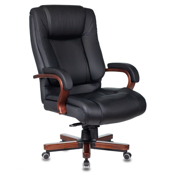 Кресло руководителя Бюрократ T-9925WALNUT/BLACK черный кожа/кожзам крестов. металл/дерево