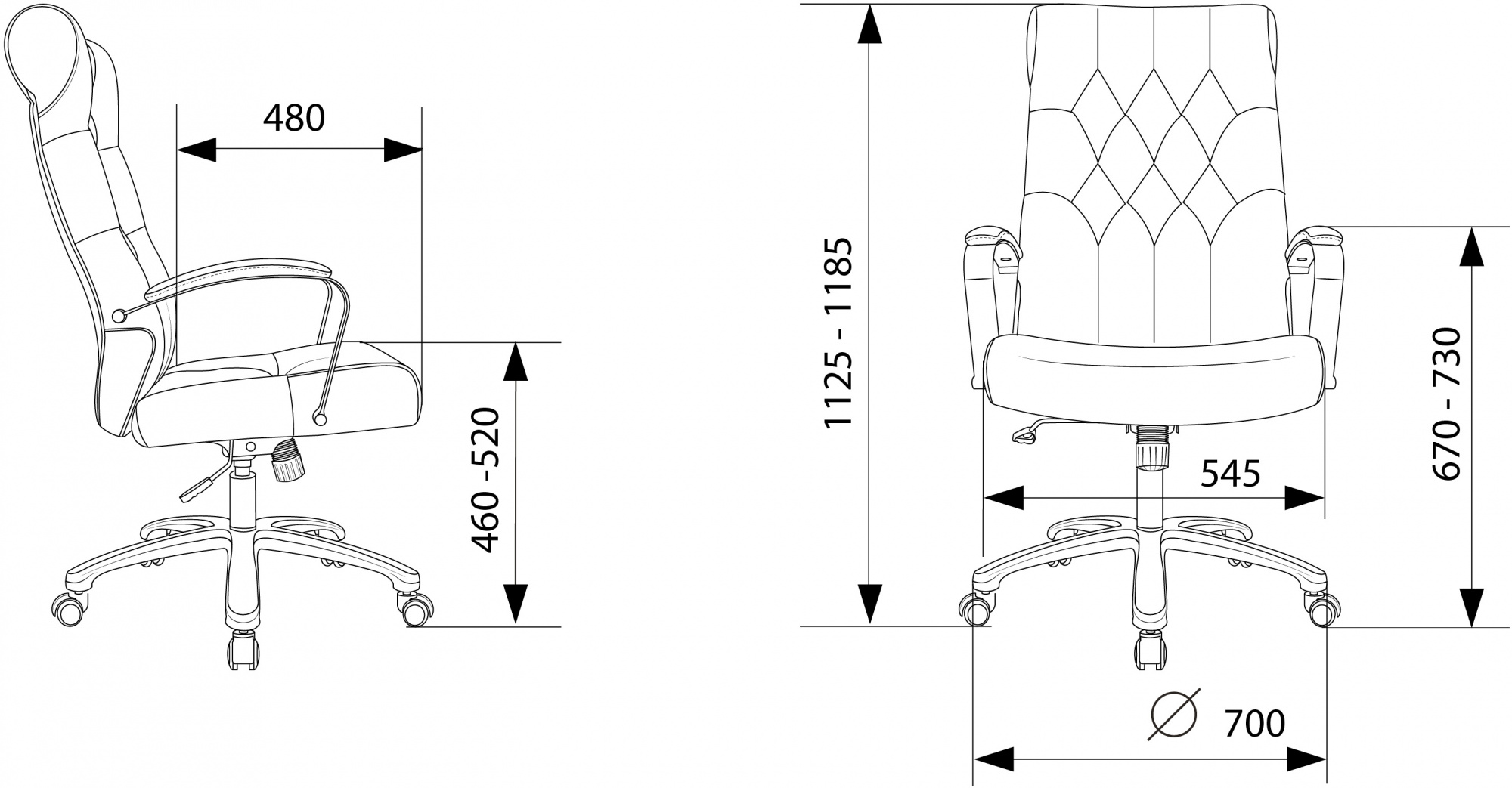 | Высота кресла / стула MIN | 1125 мм |