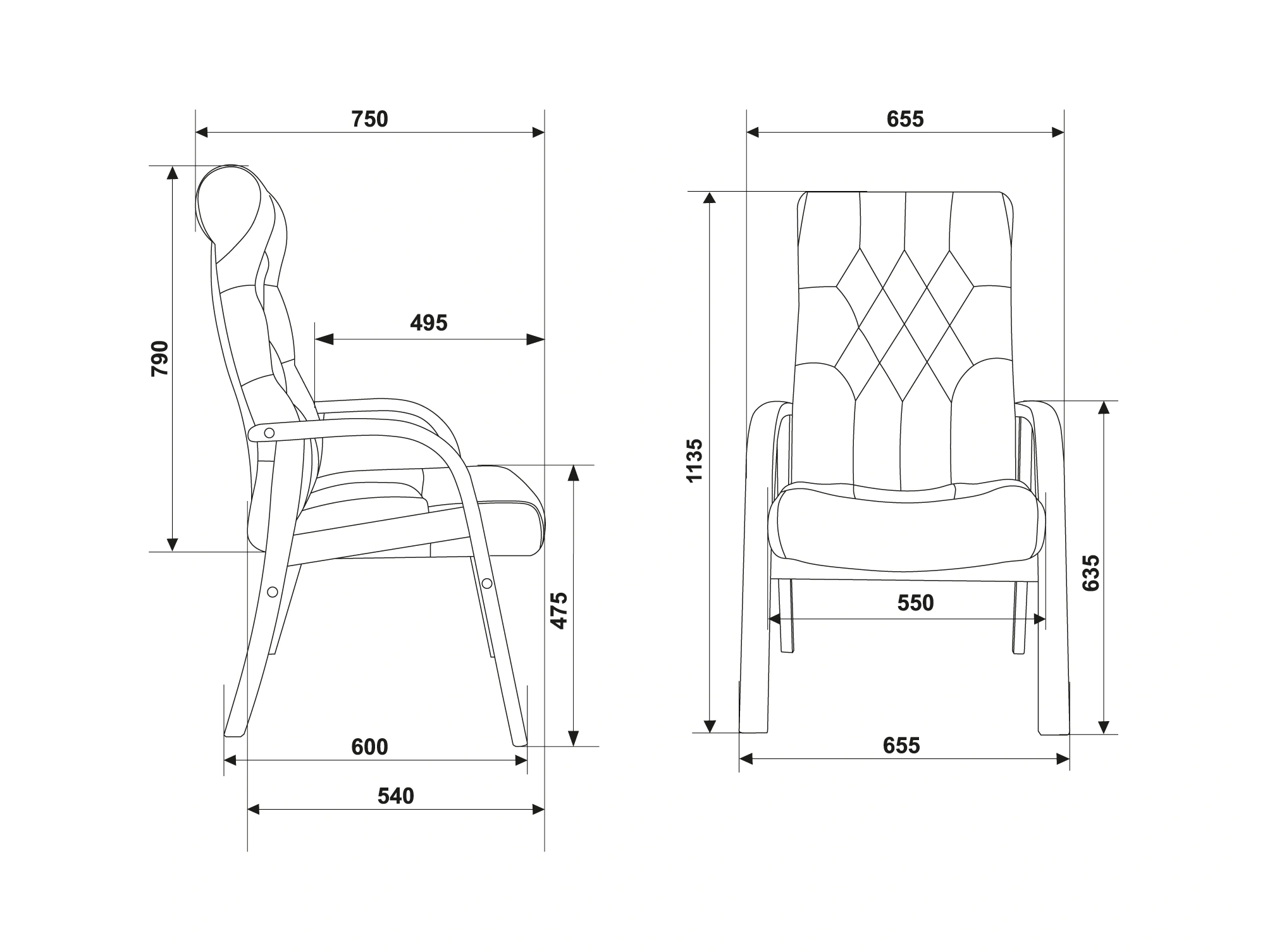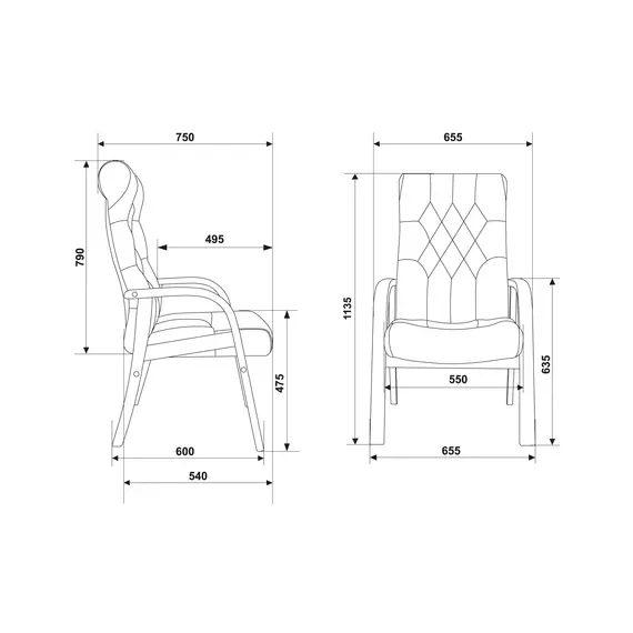 | Ширина с подлокотниками | 655 мм |