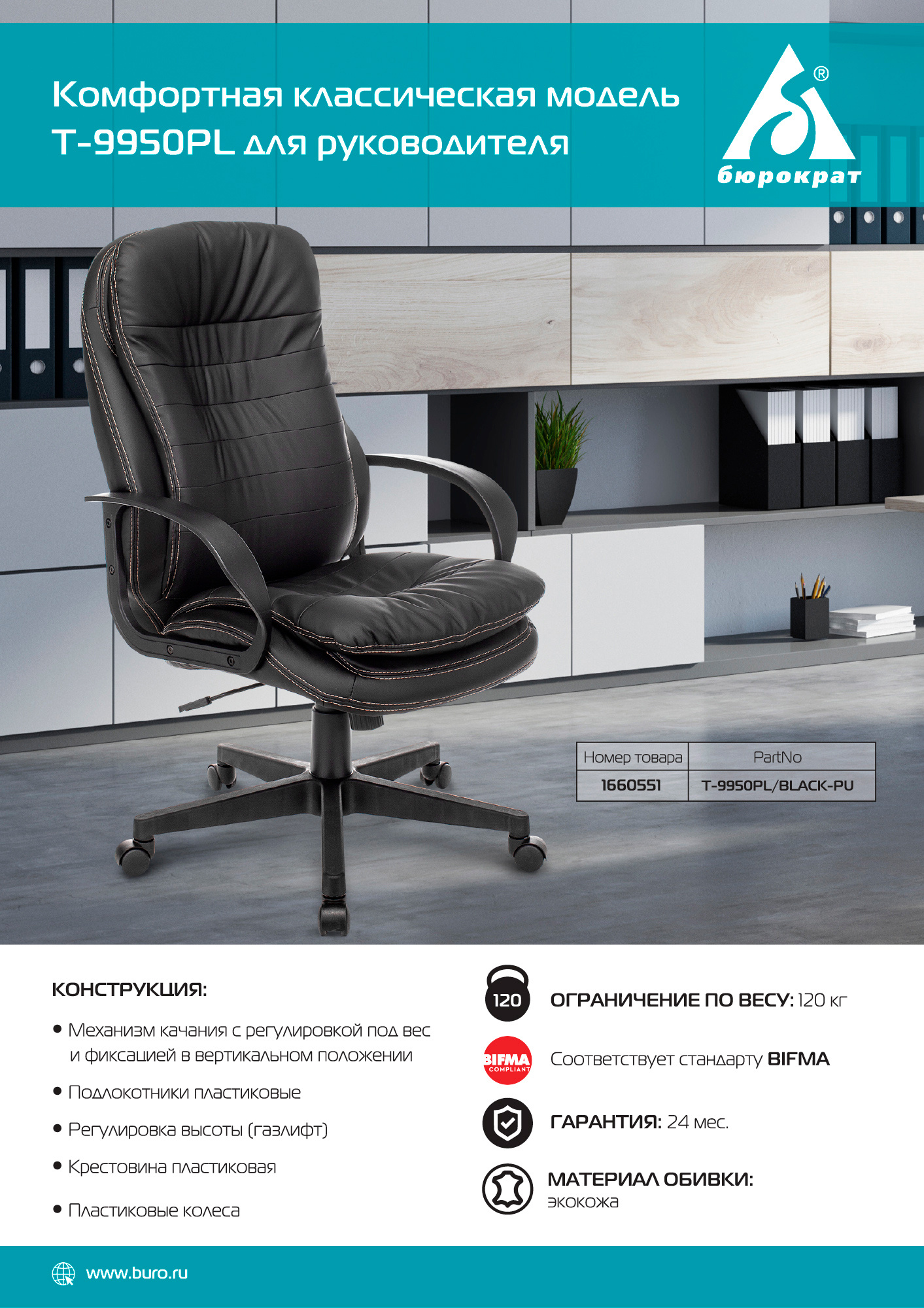 Описание Бюрократ T-9950PL/BLACK-PU
