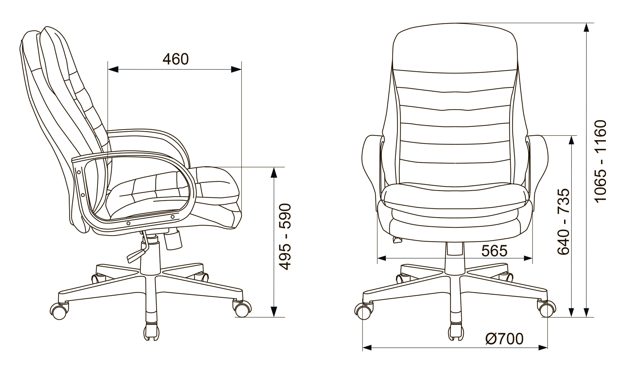 | Высота кресла / стула MIN | 1065 мм |