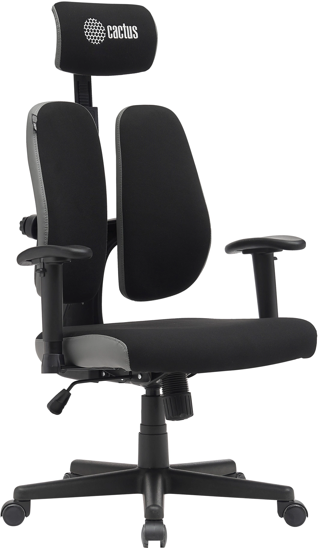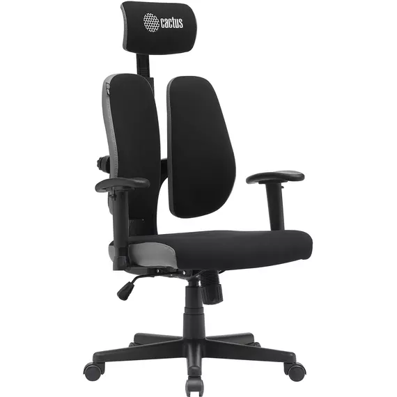 Кресло Cactus CS-CHR-MC03-BKGY черный/серый с подголов. крестов. пластик пластик черный