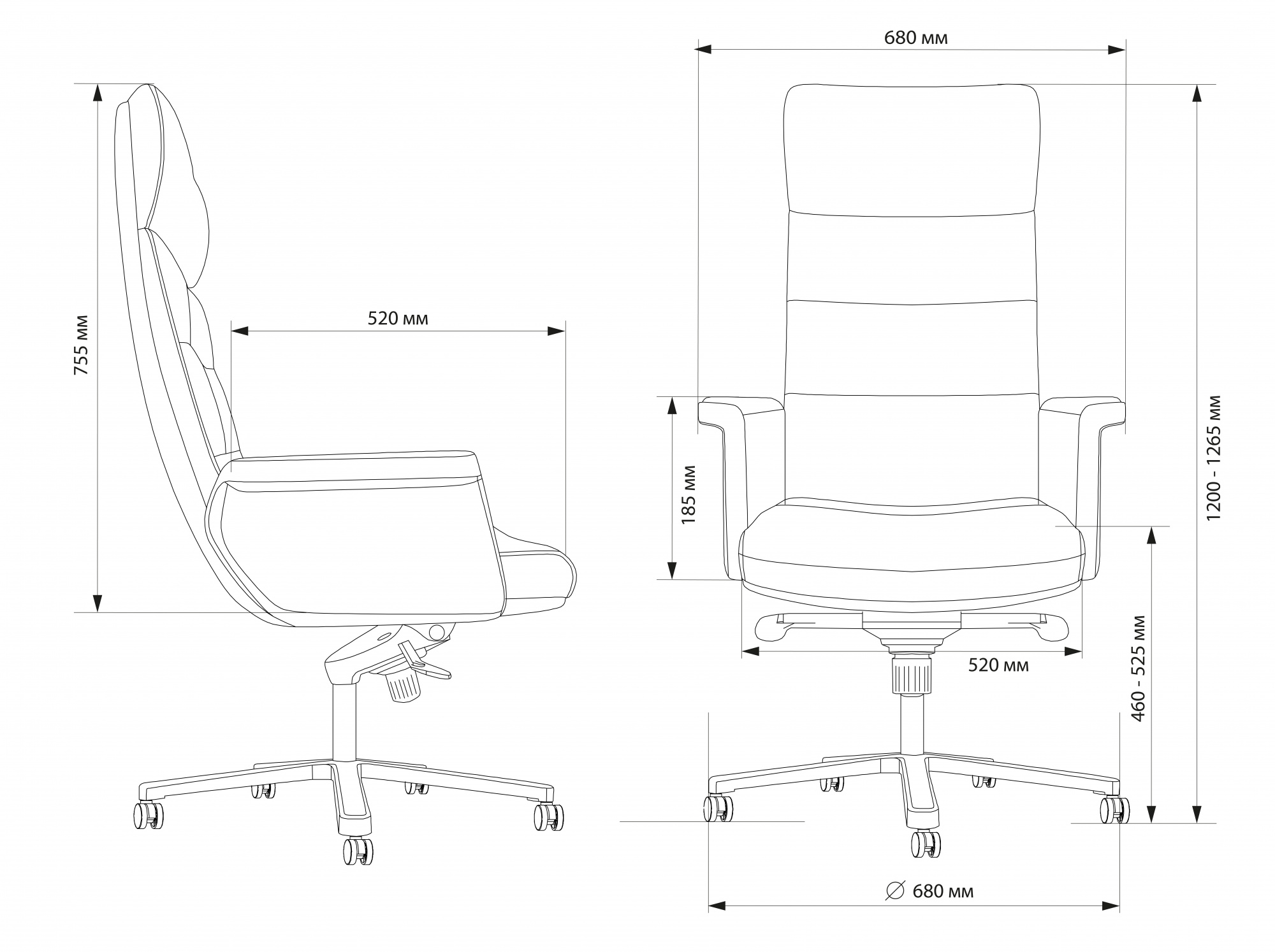 | Ширина с подлокотниками | 680 мм |
