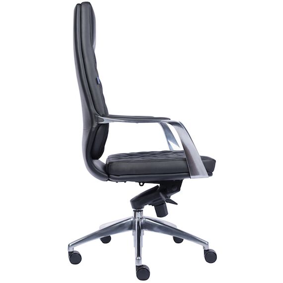 Великолепная черная экокожа и блестящий полированный алюминий придают креслу неповторимый лоск и выделяют его среди других.
