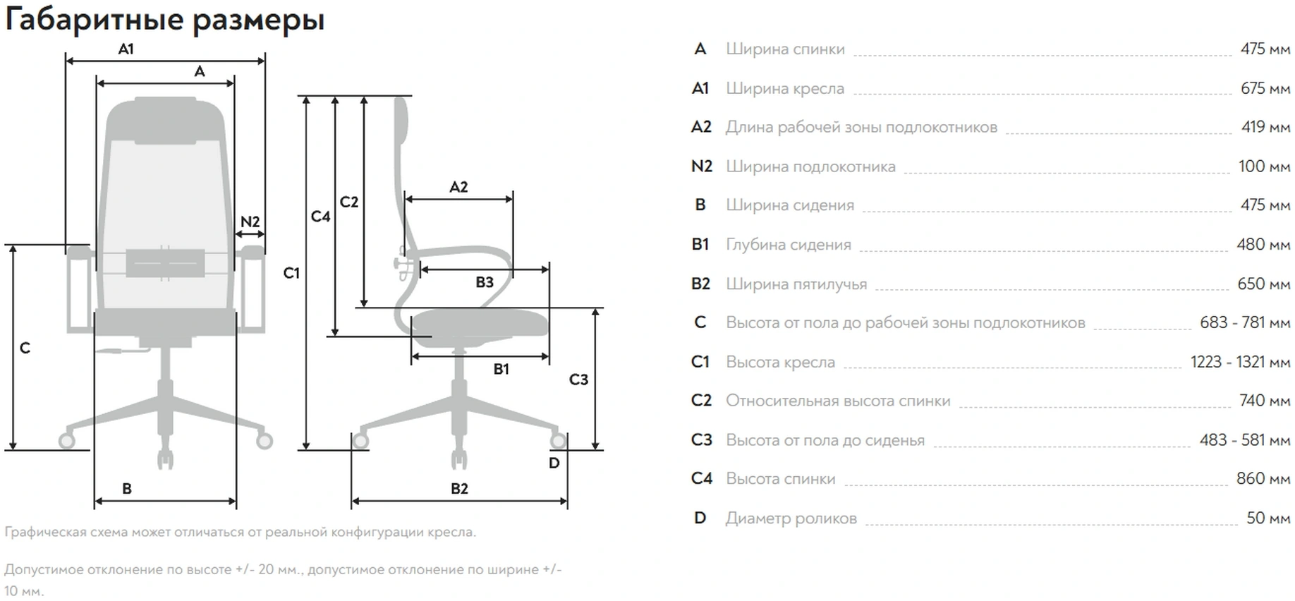 | Ширина спинки | 475 мм |