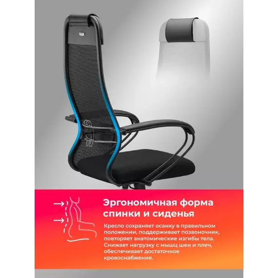 Кресло Метта ErgoLife Set 11 черный сиденье черный сетка с подголов крестов пластик хром [Z13E.12.1.222]