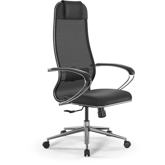 Кресло Метта ErgoLife Set 16 черный сиденье черный сет./экокожа с подголов. крестов. сталь хром [Z316737901]