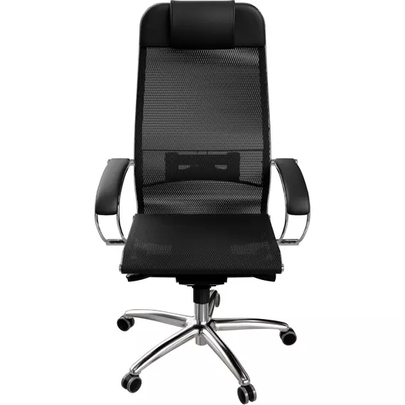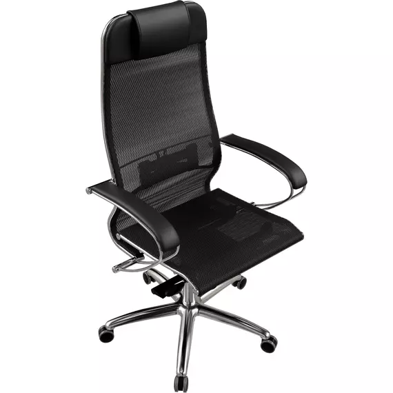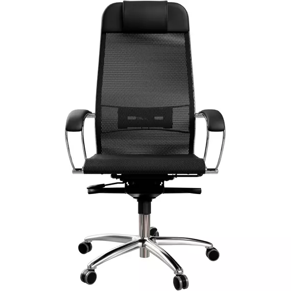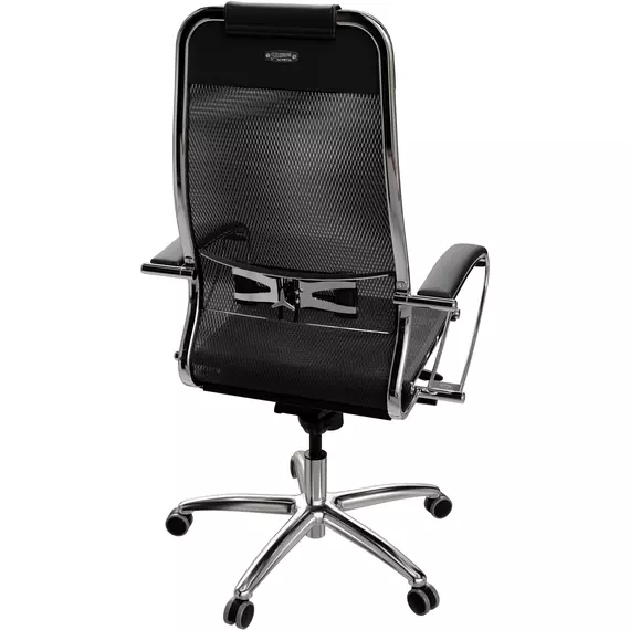 Кресло Метта Samurai S-1 черный сиденье черный сетка/кожа с подголов. крестов. алюминий хром [Z5.2.1.49]