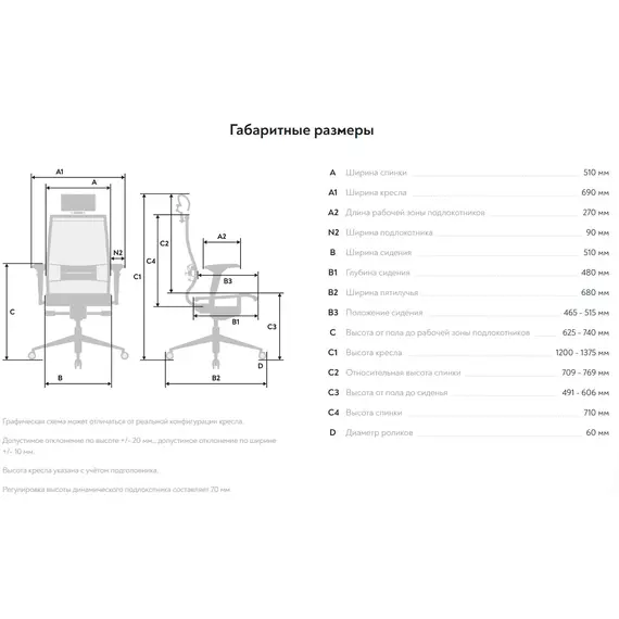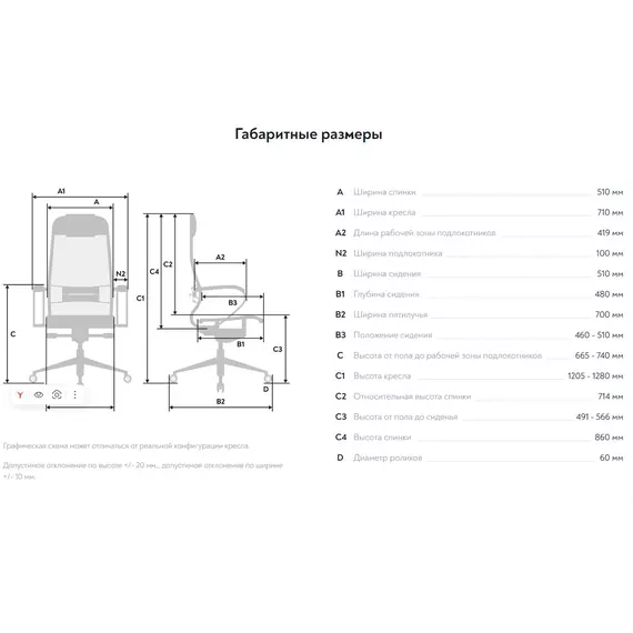 | Глубина сиденья MIN | 480 мм |