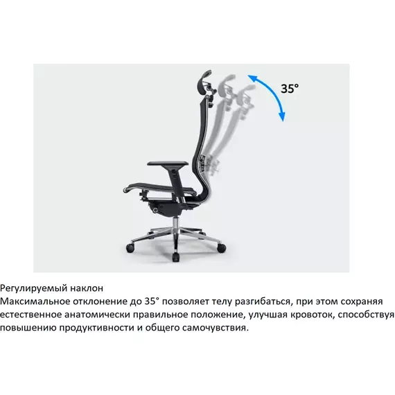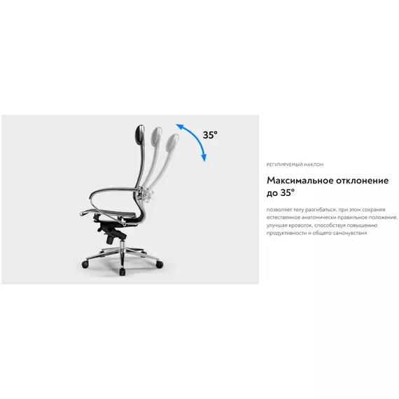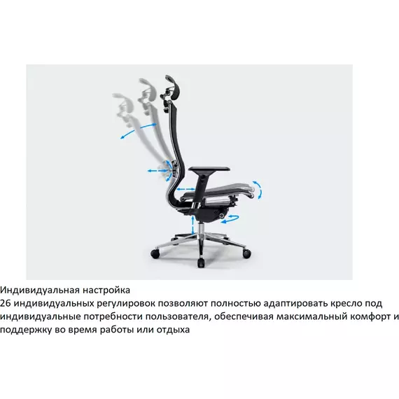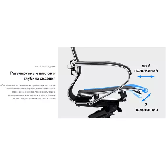 | Регулировка | высоты (газлифт), высоты подголовника, высоты сиденья (без спинки), глубины сиденья, жесткости качания, положения подлокотников, поясничной области, угла наклона подголовника |