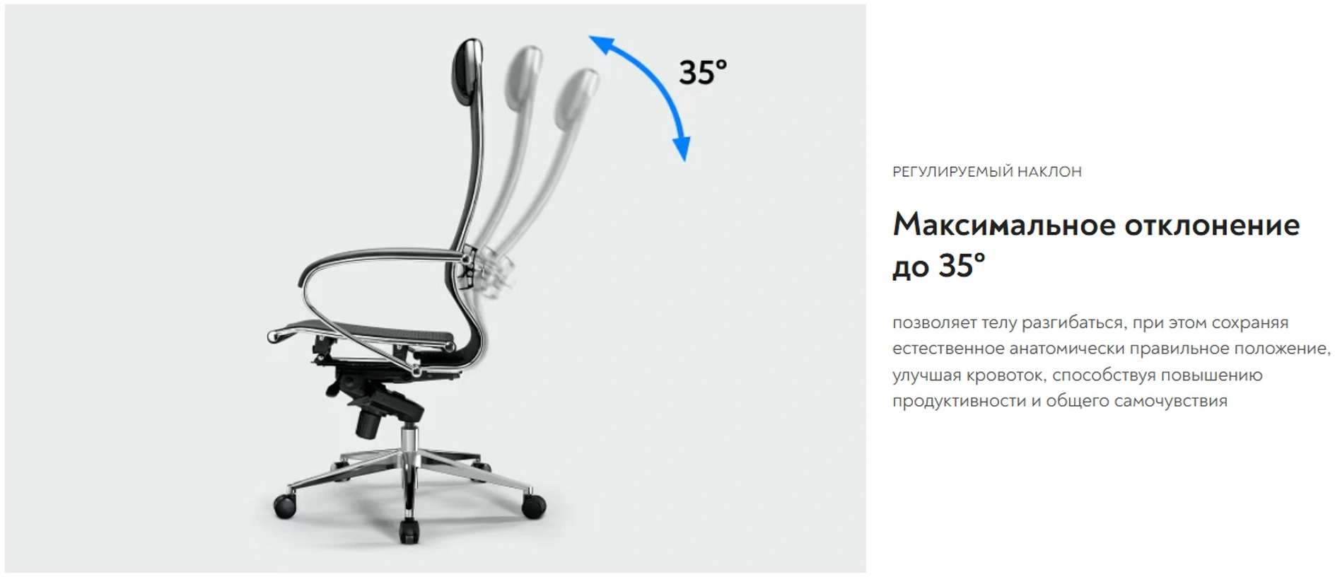 | Угол качания кресла | 25 ° |