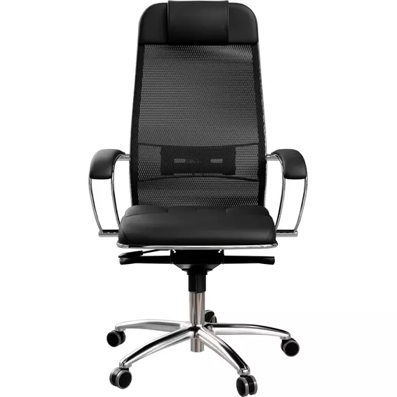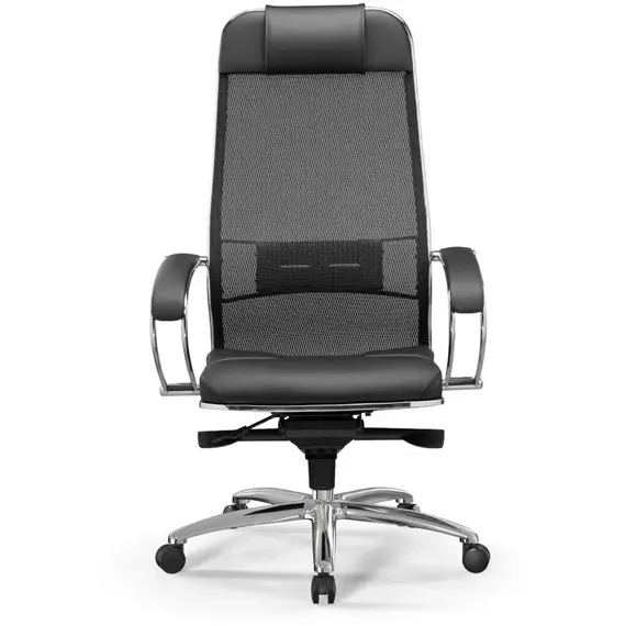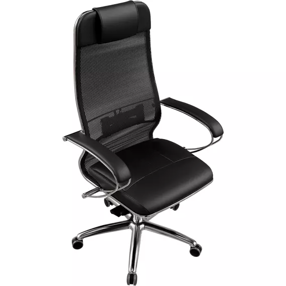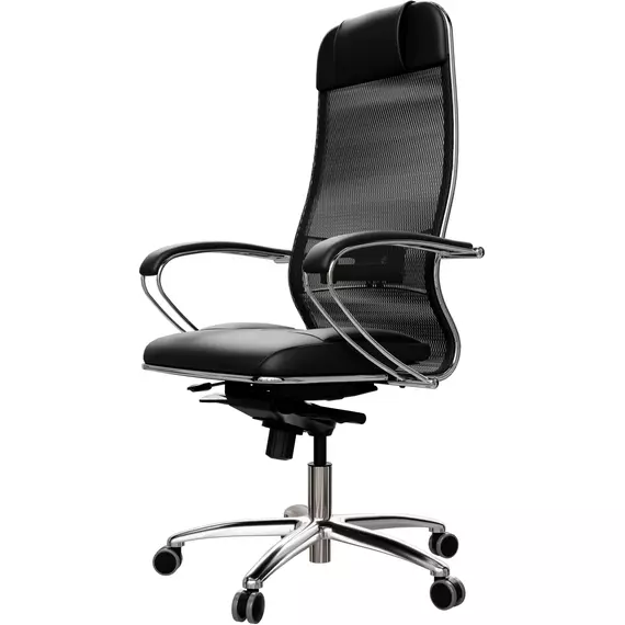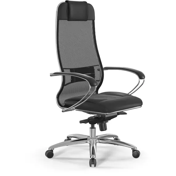 Кресло Метта Samurai SL-1 черный сиденье черный сет./экокожа с подголов. крестов. алюминий хром [ZA.2.1.49]
