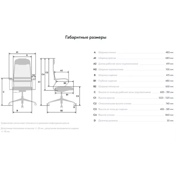| Высота с подлокотниками MIN | 683 мм |