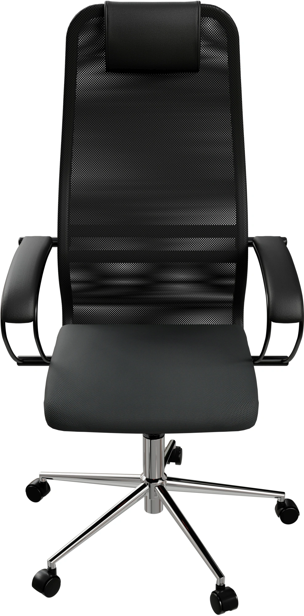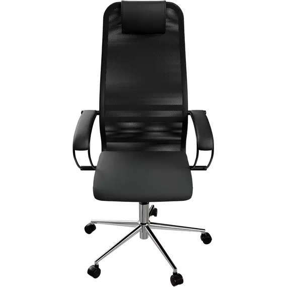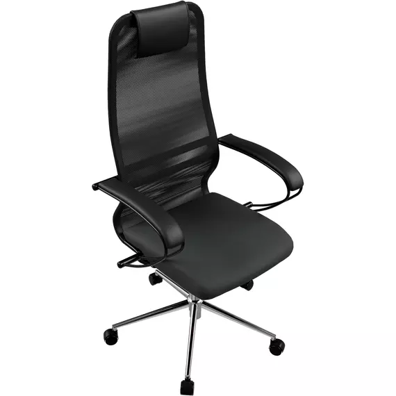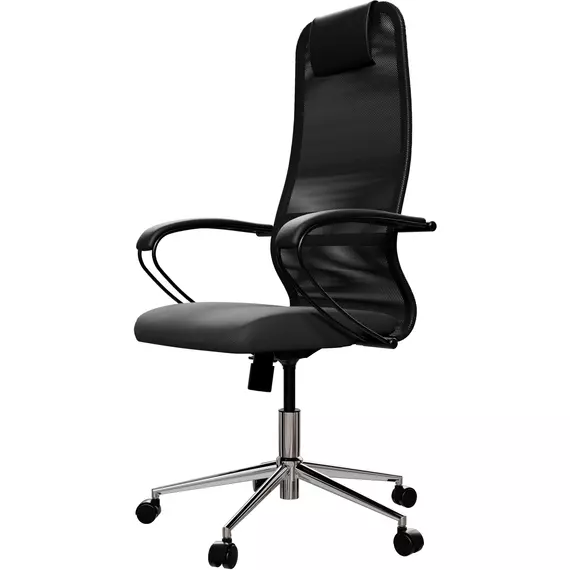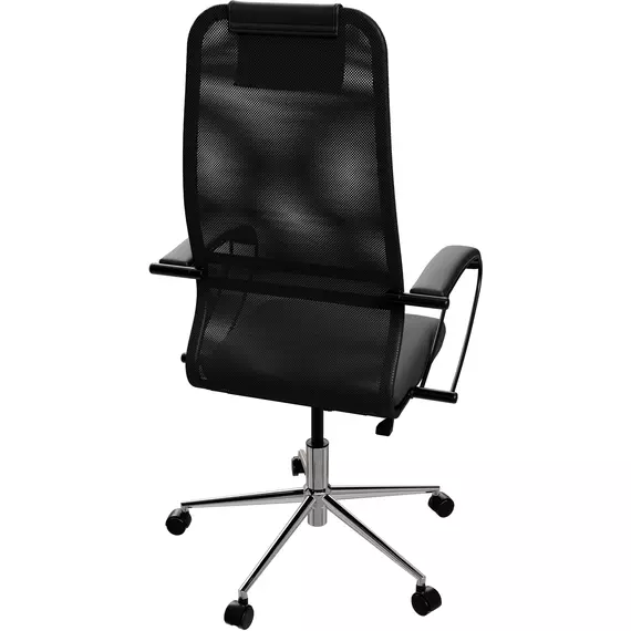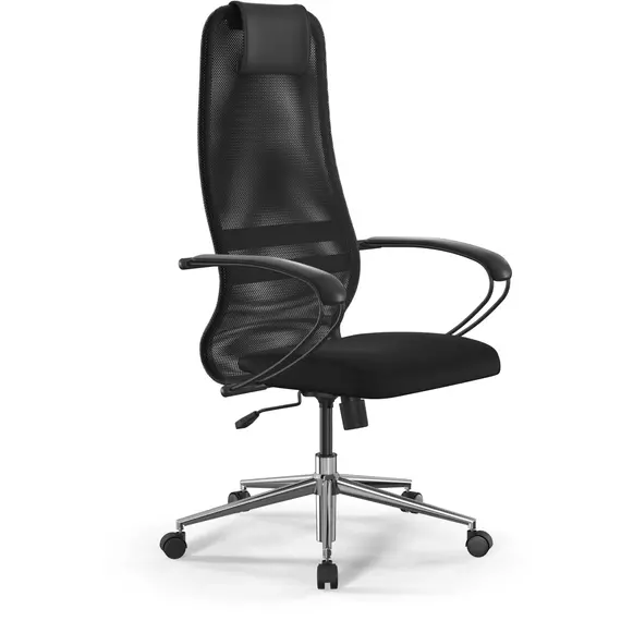 Кресло Метта SU-B-8 черный сиденье черный сетка/ткань с подголов. крестов. сталь хром [ZDA.12.1.2A2]