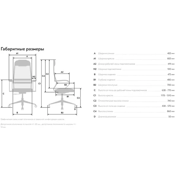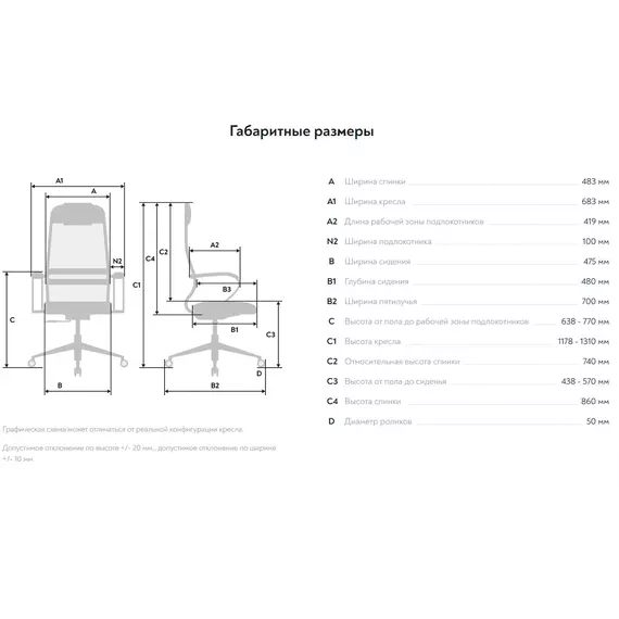 | Ширина спинки | 483 мм |